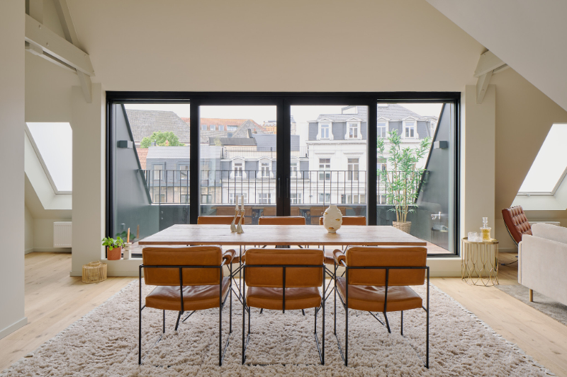 Fully furnished roof top apartment with amazing view along the river side. Top location in the commercial and cultural heart of the city centre. High standard finishing. Airconditioning. Private cellar. Common cost : 90 €/month. Fully furnished. Call 0473/26 08 65