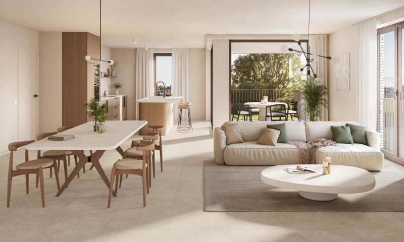 De architectuur combineert hedendaagse lijnen met een sterke focus op woonkwaliteit: grote raampartijen zorgen voor prachtige lichtinval, unieke uitzichten en een maximaal ruimtegevoel. Elk appartement beschikt over een ruim leefterras, met zicht op de omliggende natuur of de landschappelijke tuin die de gebouwen omringt. Het centrale binnenplein is volledig autovrij en versterkt het gevoel van rust en veiligheid.