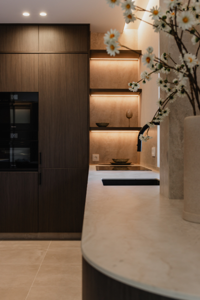 Binnenin zorgen maatwerkoplossingen van Insuite Interieur voor een verfijnde woonervaring: duurzame materialen, doordachte indelingen en een naadloze balans tussen elegantie en functionaliteit.