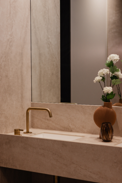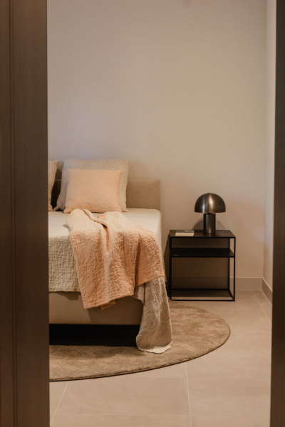 Het appartement van 137m² beschikt over twee slaapkamers, elk met een ensuite badkamer. Hier vindt u prachtig keramiekwerk, verfijnd maatwerk en hoogwaardig kraanwerk en sanitair – telkens opnieuw met dezelfde aandacht voor esthetiek en detail.